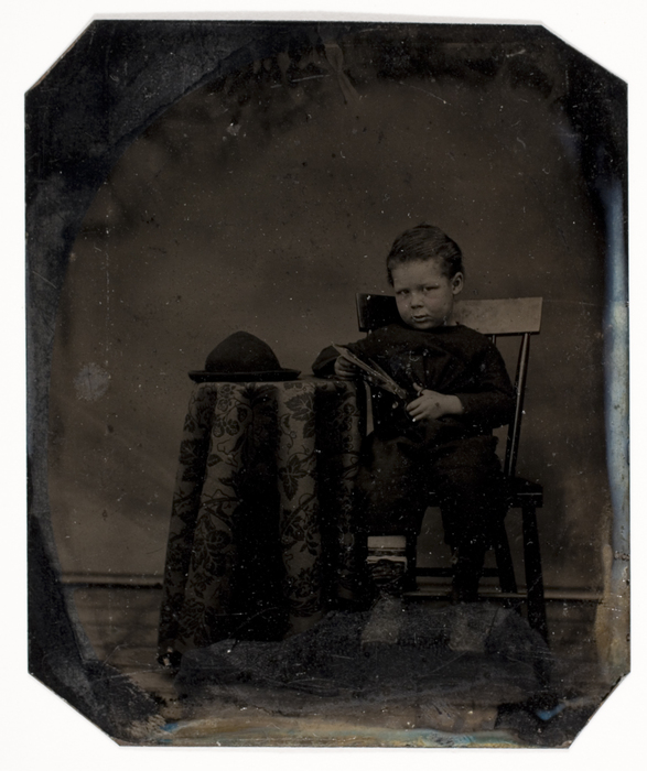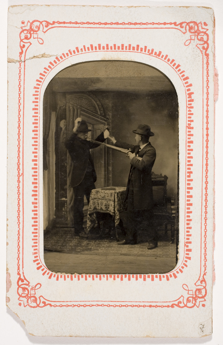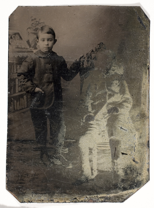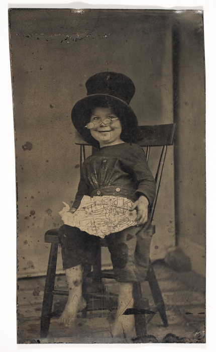 One of the most intriguing and little studied forms of nineteenth-century photography is the tintype. Introduced in 1856 as a low-cost alternative to the daguerreotype and the albumen print, the tintype was widely marketed from the 1860s through the first decades of the twentieth century as the cheapest and most popular photographic medium. Because of its ubiquity, the tintype provides a startlingly candid record of the political upheavals that rocked in the four decades following the American Civil War, and the personal anxieties they induced. The tintype studio became a kind of performance space where sitters could act out their personal identities, displaying the tools of their trade, masks and costumes, toys and dolls, stuffed animals, and props of all sorts. This uniquely American medium provides extraordinary insights into the development of national attitudes and characteristics in the formative years of the early modern era. The exhibition, organized by ICP Chief Curator Brian Wallis and guest curator Steven Kasher, includes over 150 remarkable examples of tintypes drawn from the Permanent Collection.