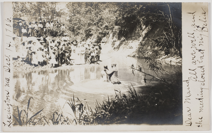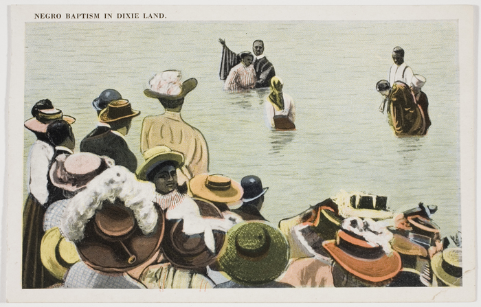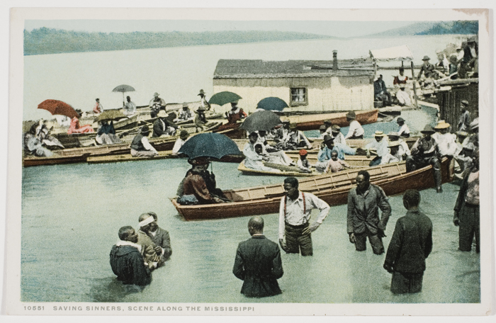 33;Religious rituals in America are not often public spectacles. A key exception was the tradition of river baptisms that flourished in the South and Midwest between 1880 and 1930. These outdoor communal rites were public displays of faith, practiced by thousands of Protestants, and witnessed by whole communities. A combination of economic depression and industrialization spurred religious fundamentalism in rural areas, and media-savvy preachers promoted mass revivals and encouraged a dialogue about religion in popular culture and media. Photographs of river baptisms were often disseminated as postcards, both by worshippers documenting their personal life-affirming experiences and by tourists noting exotic practices and vanishing folk traditions. This small exhibition of vintage postcards and a panorama is drawn from a unique archive of vernacular river baptism photographs given to the International Center of Photography by Janna Rosenkranz and Jim Linderman. This exhibition is organized by Erin Barnett, ICP Assistant Curator of Collections.