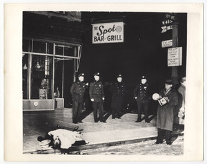 [Weegee in police station]