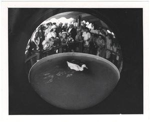 Weegee, born Usher Fellig on June 12, 1899, in the town of Lemburg (now in Ukraine), first worked as a photographer at age fourteen, three years after his family immigrated to the United States, where his first name was changed to the more American-sounding Arthur. Self-taught, he held many other photography-related jobs before gaining regular employment at a photography studio in lower Manhattan in 1918. This job led him to work at a variety of newspapers until, in 1935, he became a freelance news photographer. He centered his practice around police headquarters and in 1938 obtained permission to install a police radio in his car. This allowed him to take the first and most sensational photographs of news events and offer them for sale to publications such as the Herald-Tribune, Daily News, Post, the Sun, and PM Weekly, among others. During the 1940s, Weegee's photographs appeared outside the mainstream press and met success there as well. New York's Photo League held an exhibition of his work in 1941, and the Museum of Modern Art began collecting his work and exhibited it in 1943. Weegee published his photographs in several books, including Naked City (1945), Weegee's People (1946), and Naked Hollywood (1953). After moving to Hollywood in 1947, he devoted most of his energy to making 16-millimeter films and photographs for his "Distortions" series, a project that resulted in experimental portraits of celebrities and political figures. He returned to New York in 1952 and lectured and wrote about photography until his death on December 26, 1968.