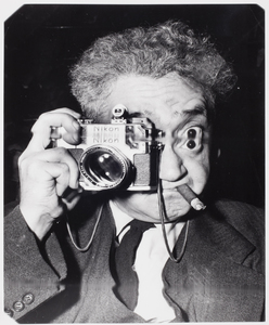 Weegee, born Usher Fellig on June 12, 1899, in the town of Lemburg (now in Ukraine), first worked as a photographer at age fourteen, three years after his family immigrated to the United States, where his first name was changed to the more American-sounding Arthur. Self-taught, he held many other photography-related jobs before gaining regular employment at a photography studio in lower Manhattan in 1918. This job led him to work at a variety of newspapers until, in 1935, he became a freelance news photographer. He centered his practice around police headquarters and in 1938 obtained permission to install a police radio in his car. This allowed him to take the first and most sensational photographs of news events and offer them for sale to publications such as the Herald-Tribune, Daily News, Post, the Sun, and PM Weekly, among others. During the 1940s, Weegee's photographs appeared outside the mainstream press and met success there as well. New York's Photo League held an exhibition of his work in 1941, and the Museum of Modern Art began collecting his work and exhibited it in 1943. Weegee published his photographs in several books, including Naked City (1945), Weegee's People (1946), and Naked Hollywood (1953). After moving to Hollywood in 1947, he devoted most of his energy to making 16-millimeter films and photographs for his "Distortions" series, a project that resulted in experimental portraits of celebrities and political figures. He returned to New York in 1952 and lectured and wrote about photography until his death on December 26, 1968.