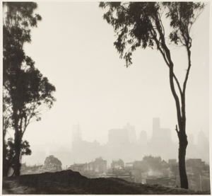 Born in Sacramento, California, in 1879 to middle-class parents, William Edward Dassonville and his family moved to San Francisco when he was a child. Given a camera at a young age, he used it to document his family and friends as well as trips across the state. He joined San Francisco’s avant-garde Camera Club, attending their lectures, trips, and exhibitions as well as writing articles for Camera Craft, the club’s publication. In his twenties, he became acquainted with the city’s artists including William Keith, George Stirling, Maynard Dixon, and John Muir, whom he later photographed in the portrait studio he opened with Oscar Maurer in 1900. Although the studio was destroyed by the 1906 earthquake, Dassonville managed to salvage some of his work. He supported himself by taking portraits but continued to make beautiful platinum prints of the California landscape in the pictorialist style. In the 1920s, he shifted his focus to San Francisco’s waterfront, skyline, and architecture. These impressionist images were printed on Dassonville’s own “Charcoal Black” paper. In response to the shortage of platinum printing paper with the onset of World War I, the photographer and self-taught chemist developed an alternative paper coating that had the tonal intricacy of platinum that was heralded by Ansel Adams, Imogene Cunningham, and many others. Although Dassonville won numerous prizes and awards and exhibited his pictorialist landscapes alongside the work of Alfred Stieglitz, Clarence H. White, Gertrude Kasebier, and other pioneering photographers during his life, he was a relatively unknown medical photographer at Stanford University at the time of his death in 1957. His reputation was rehabilitated when two California art dealers found a trove of Dassonville’s work in a pair of trunks several years ago. Like late nineteenth century paintings, Dassonville’s rich tonal photographs infuse both people and places with a haunting and ethereal quality while honoring photography’s place within the fine arts.