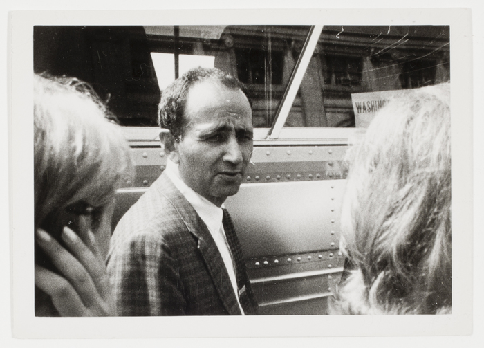 [A man standing outside the Washington Monument Express en route to the March on Washington for Jobs and Freedom, Washington, D.C.]
