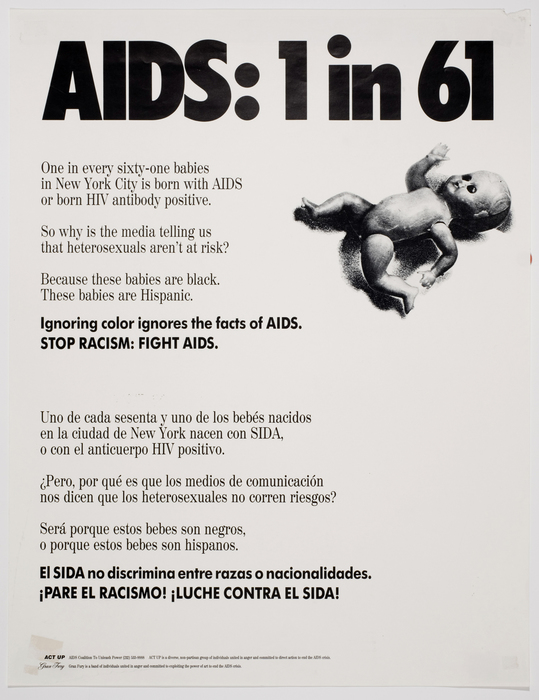 Gran Fury AIDS: 1 in 61 Date 1988 Location United States New York Dimensions Overall: 22 x 17 in. (55.9 x 43.2 cm) Print medium Print-Lithograph Credit Line Purchase, with funds provided by the ICP Acquisitions Committee, 2000 Accession No. 1376.2000