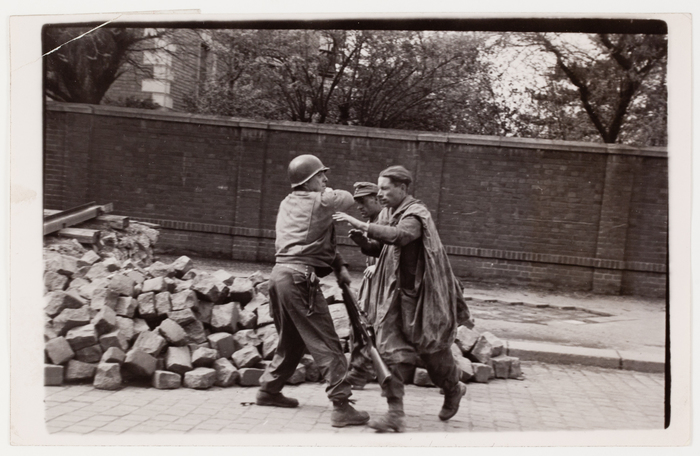 [American soldiers capturing German sniper after the death of seargent, Leipzig]