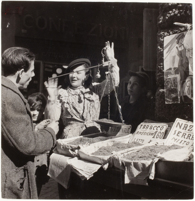 Chim (David Seymour) [Black market tobacco sold on the street, Italy] Date ca. 1948 Dimensions Image (Paper): 7 13/16 x 7 9/16 in. (19.8 x 19.2 cm) Print medium Photo-Gelatin silver Credit Line Ben Shneiderman Collection Accession No. BS1118