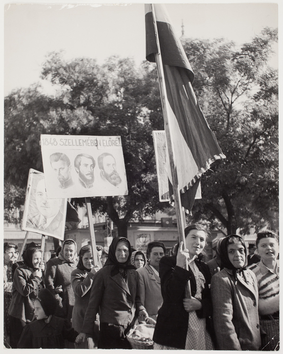 [Communists parading to the inauguration of a new tractor station and Catholics in procession to a healing shrine, Kecskemet, Hungary]