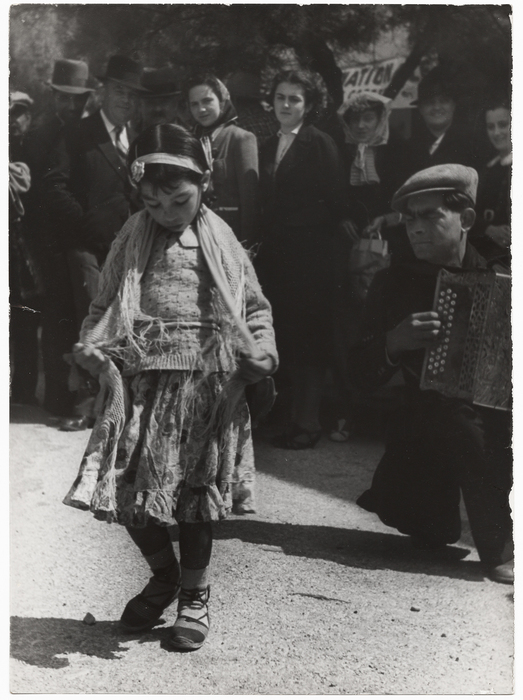 Tchiki Weiss [Crowd of people watching and hearing a gypsy musician and a a little gypsy girl dancing on the street, France] Date 1936-39 Location France Dimensions Image: 7 1/16 x 9 5/8 in. (17.9 x 24.5 cm) Print medium Photo-Gelatin silver Accession No. 2010.98.109