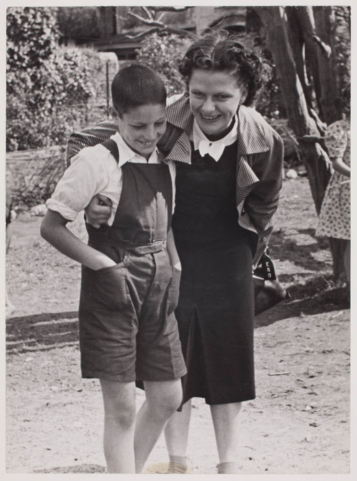 [Esme Odgers and Lorenzo, the boy sponsored by Eleanor Roosevelt, at a home for Spanish refugee children organized by the Foster Parents' Plan, near Biarritz, France]
