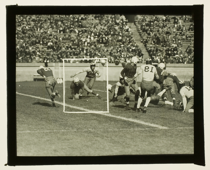 Martin Munkacsi [Football game] Date ca. 1936 Dimensions Overall: 3 1/2 x 4 11/16 x 1/16 in. (8.9 x 11.9 x 0.2 cm) Print medium Photo-Negative-Glass plate Credit Line Museum Purchase, 2007 Accession No. 2007.110.1592