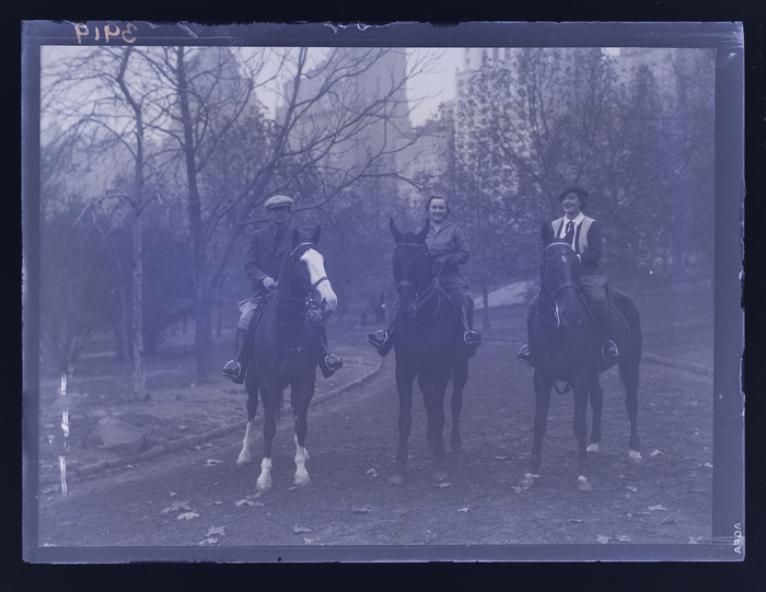 [Martin Munkacsi, Mrs. Biller, and woman on horseback, Central Park, New York]