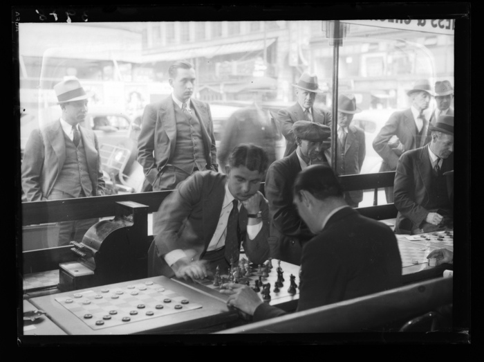 Martin Munkacsi [Men playing chess] Date 1930s Dimensions Overall: 3 1/2 x 4 11/16 x 1/16 in. (8.9 x 11.9 x 0.2 cm) Print medium Photo-Negative-Glass plate Credit Line Museum Purchase, 2007 Accession No. 2007.110.1722