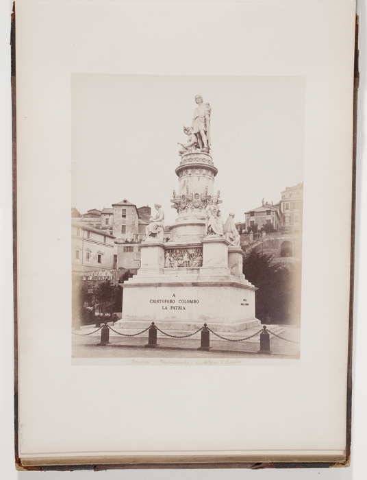 [Monument dedicated to Christopher Columbus. The navigator is portrayed in 15th century clothes with the left arm leaning on an anchor. At the foot of the statue stands an allegoric female figure, Genoa, Italy]