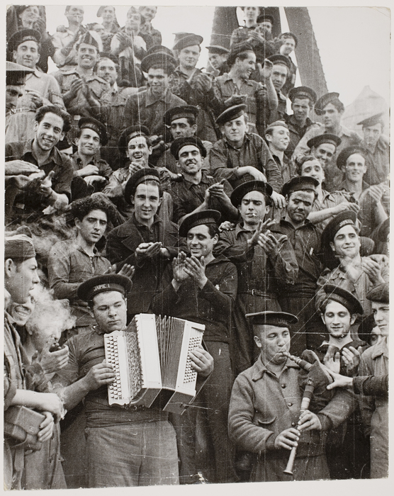 [Navy crew of the battleship Jamie I playing instruments, Almeria, Spain]