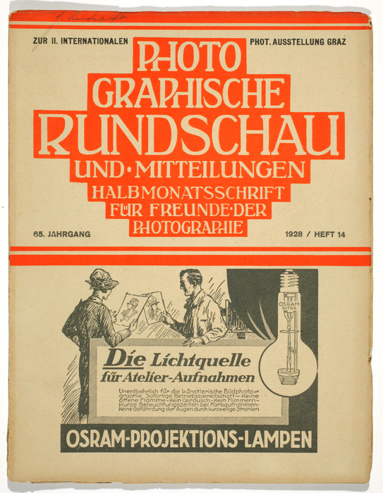 Photographische Rundschau und Mitteilungen Photographische Rundschau und Mitteilungen Date July 1928 Dimensions Overall: 11 1/8 x 8 1/2 x 1/8 in. (28.3 x 21.6 x 0.3 cm) Print medium Print-Lithograph Credit Line Museum Purchase, 2004 Accession No. 26.2004.13