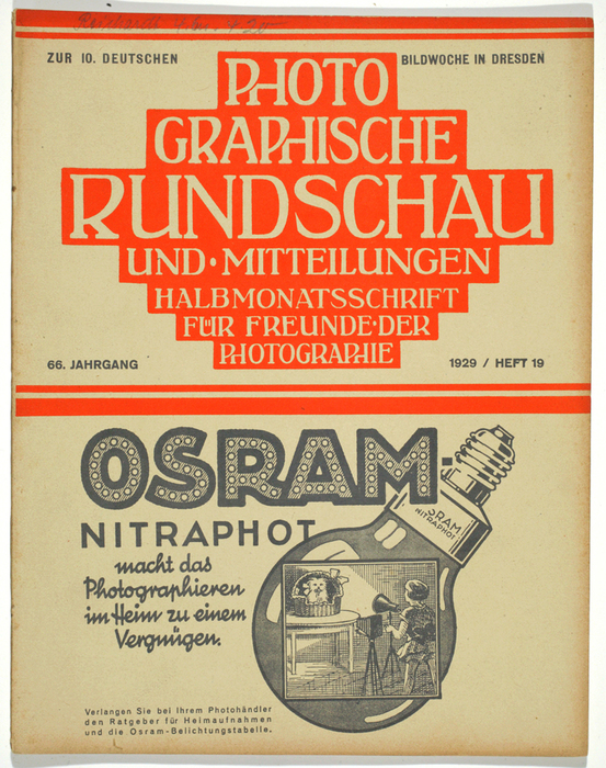 Photographische Rundschau und Mitteilungen Photographische Rundschau und Mitteilungen Date October 1929 Dimensions Overall: 11 x 8 9/16 x 1/8 in. (27.9 x 21.7 x 0.3 cm) Print medium Print-Lithograph Credit Line Museum Purchase, 2004 Accession No. 26.2004.39