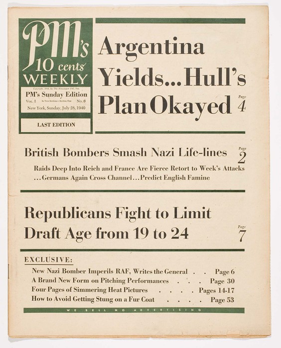 Weegee Margaret Bourke-White PM Date July 28, 1940 Location United States New York Dimensions Overall: 14 1/2 x 11 1/2 x 1/16 in. (36.8 x 29.2 x 0.2 cm) Print medium Print-Lithograph Credit Line Museum Purchase, 2007 Accession No. 2007.15.62