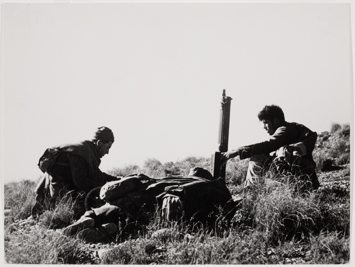 [Republican soldiers installling anti-aircraft artillery, Rio Segre, Aragon Front, near Fraga, Spain]