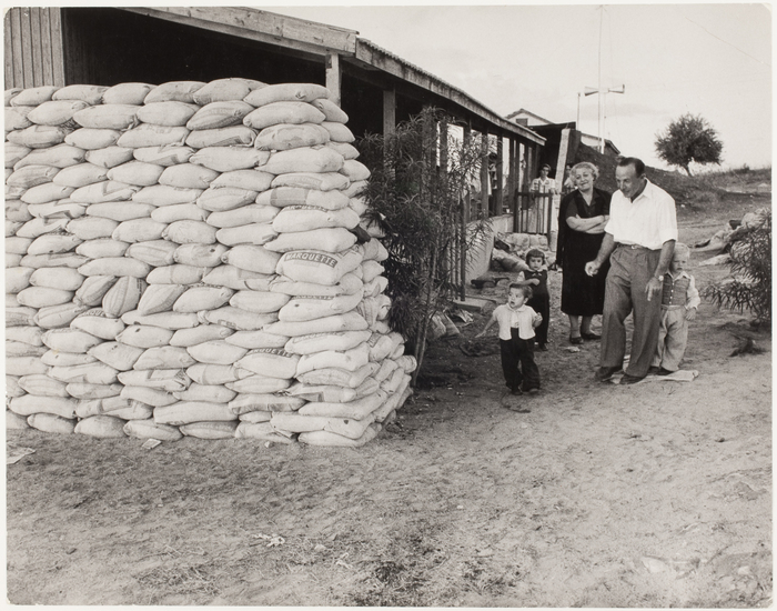 Chim (David Seymour) [Sandbags protecting kindergarten, Israel] Date 1952 Dimensions Image (paper): 9 1/4 x 11 13/16 in. (23.5 x 30 cm) Print medium Photo-Gelatin silver Credit Line Ben Shneiderman Collection Accession No. BS1385