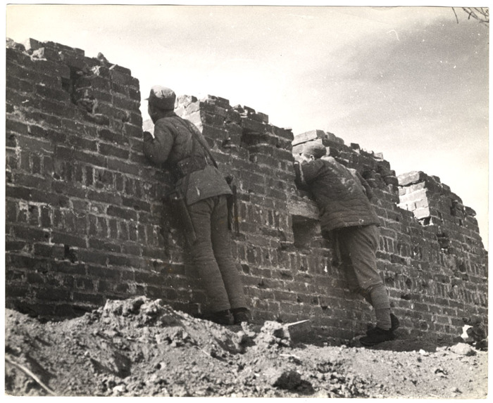 [Soldiers guarding the town, Tai'erzhuang, Xuzhou front, China]