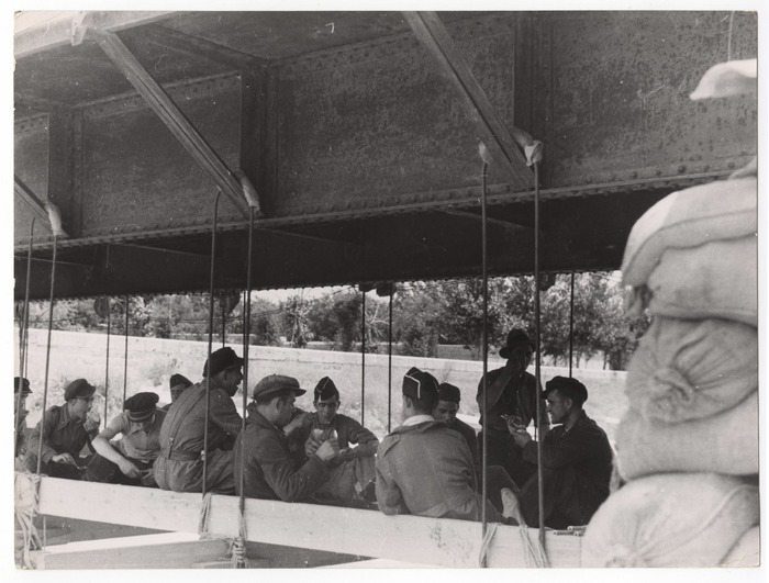 Gerda Taro [Soldiers, Segovia Bridge, Madrid] Date February 1937 Location Spain Madrid Dimensions Image (Paper): 8 5/8 x 11 1/2 in. (21.9 x 29.2 cm) Print medium Photo-Gelatin silver Credit Line The Robert Capa and Cornell Capa Archive, Gift of Cornell and Edith Capa Accession No. 1017.1992