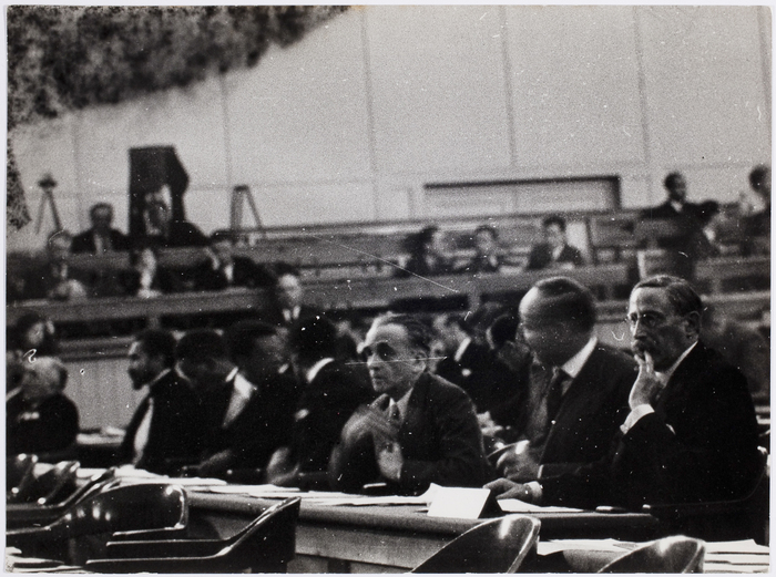 Robert Capa [Speakers behind a table, League of Nations, Geneva] Date July 1936 Location France Dimensions Image (Paper): 7 x 9 1/2 in. (17.8 x 24.1 cm) Print medium Photo-Gelatin silver Credit Line The Robert Capa and Cornell Capa Archive, Gift of Cornell and Edith Capa, 2010 Accession No. 2010.85.584