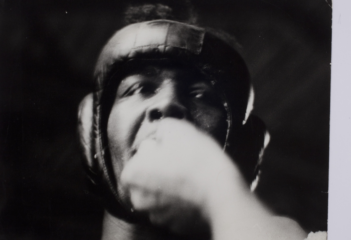 [Stillman's Gym, close up of boxer George Brothers getting punched in the face, New York]