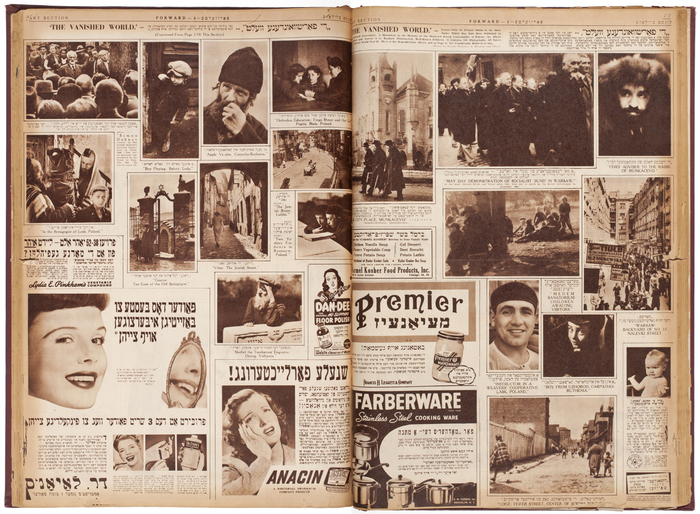 [The Forward, Sunday Art Section featuring an article advertising The New York Forward Association’s 1947 book The Vanished World]