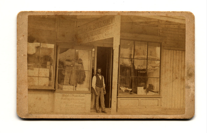 [Thomas Whiten Pierre outside the Victoria Dying Establishment, Victoria, British Columbia]