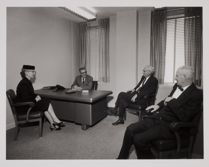 [Three men and a woman in an office]