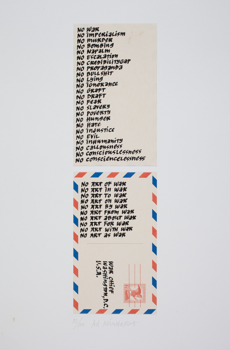 Ad Reinhardt Artists' Poster Committee of Art Workers Coalition War Chief Date 1967 Dimensions Paper: 25 7/8 x 21 1/16 in. (65.7 x 53.5 cm) Print medium Collage Credit Line Gift of the Artists' Poster Committee with funds provided by the ICP Acquisitions Committee, 2002 Accession No. 805.2002