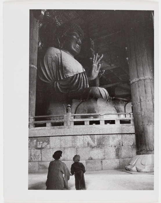 [Woman and child looking at the The Great Buddha sculpture in the Todai-ji Buddhist temple, Nara, Japan]
