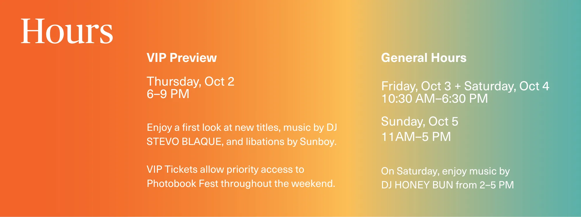 The Photobook Fest Application closed on May 30, 2025. If you would like to be added to the 2025 waitlist for consideration to participate as a publisher in Photobook fest or to learn about the 2026 Photobook Fest, please sign up here.