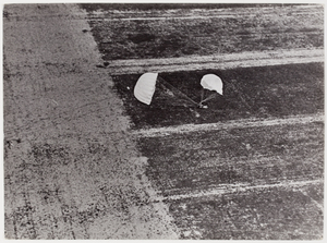 Robert Capa [French air force parachute, A parachutist lands in a field at Paratrooper school in Avignon-Pujaut, France]