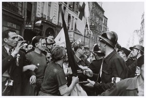 Robert Capa [Soldiers and civilians on a tank in the parade celebrating the liberation of the city, Paris]