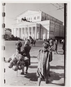 Robert Capa [Woman selling rubber balls for the city's 800th anniversary celebrations in front of the Bolshoi Theatre, Moscow]