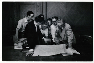 David L. Lawrence, Pittsburgh mayor, seated, pointing