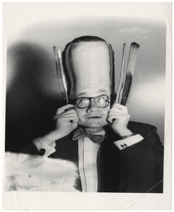 Robert Capa [Women wearing hats in front of the Pierre-Auguste Renoir painting, Madame Monet and her son, 1874, Molyneux Studio, Paris, France]