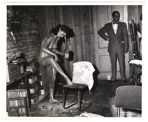 Robert Capa [Edward Molyneux showing a book to a woman with a Claude Monet painting, The Promenaders - Bazille and Camille, 1865, in the background, Paris, France]