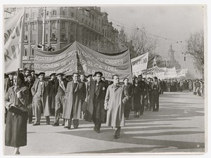 Robert Capa [Woman holding baby, man, and young girl along train track fleeing Nationalist bombings, near Cerro Muriano, Córdoba front, Spain]