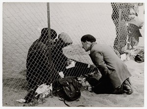 Robert Capa [Refugees writing a letter to a French citizen on the other side of a barbed wire fence, Le Barcares]