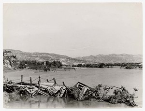 Robert Capa [Republican soldiers working on a wooden bridge destroyed by the Fascists, Rio Segre, Aragon front, near Fraga, Spain]